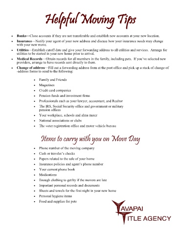 • Insurance—Notify your agent of your new address and discuss how your insurance needs may change