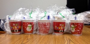 The festive mugs were provided for the seniors’ Christmas party. Each food basket had many items to be used for holiday cooking like Kraft Stove Top Stuffing and canned vegetables, as well as dessert items like shortbread cookies and chocolate covered cherries.